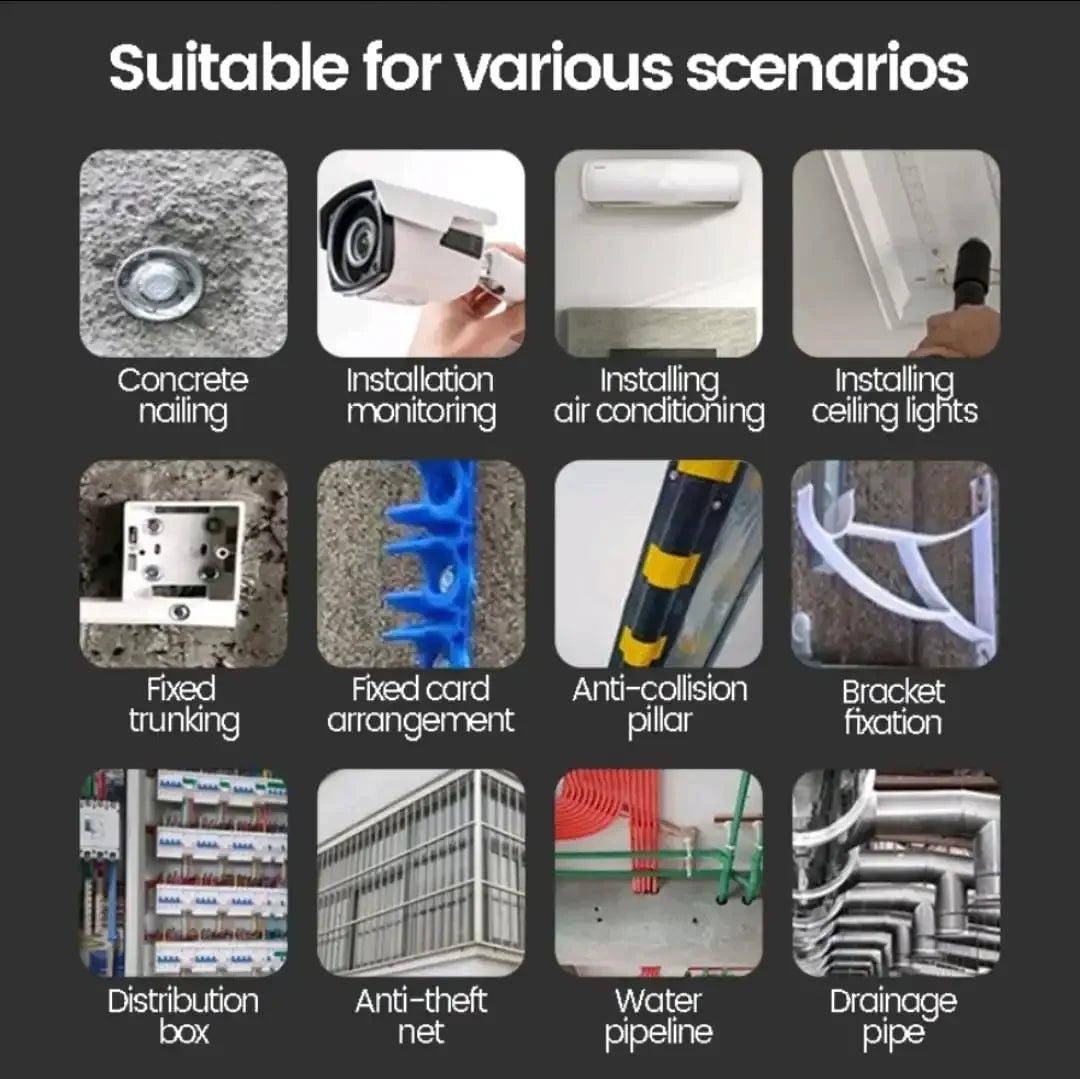 5. Widely Using. Suitable for red brick walls, concrete walls, 8mm aluminum alloy wire ducts, and thick wooden boards. No large amount of dust, energy saving and environmentally friendly